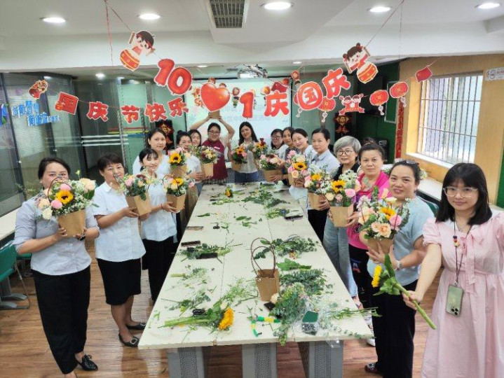 近日,龙都社区积极联合共建单位,携手特殊人群共同开展“花艺贺华诞,甜意迎中秋”双节主题活动,营造了浓厚的节日氛围。