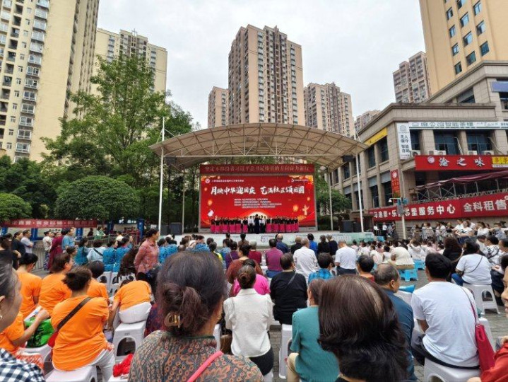 9月26日,丽景社区举办“月满华诞情暖丽景”国庆中秋文艺汇演,红灯笼映国旗,提前添双节氛围。汇演由15个社区居民自编的节目组成。活动现场还举行了“国庆知识问答”“中秋习俗猜猜看”等互动环节。